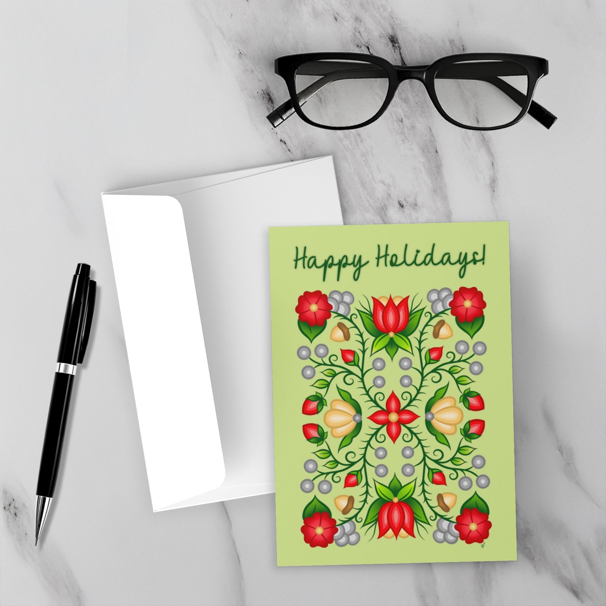 Green Holiday Floral Folded Greeting Cards - 120# Silk Cover is backordered and will ship as soon as it is back in stock.