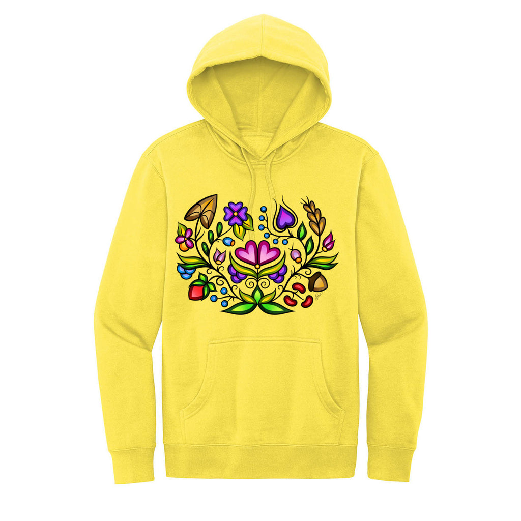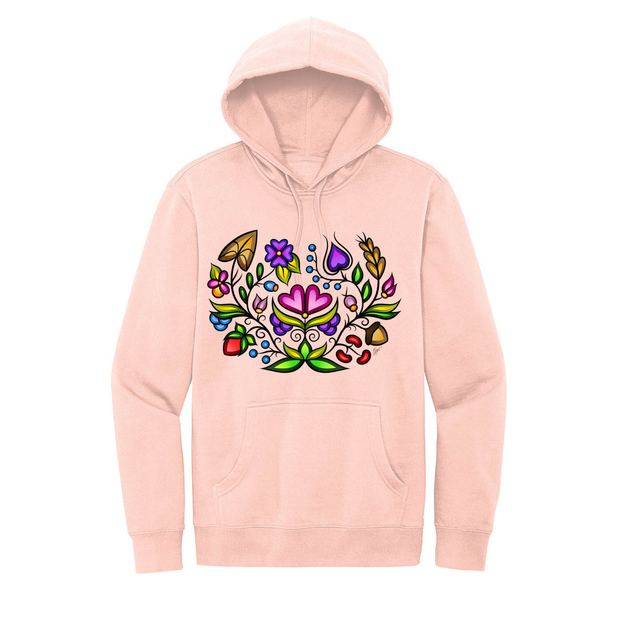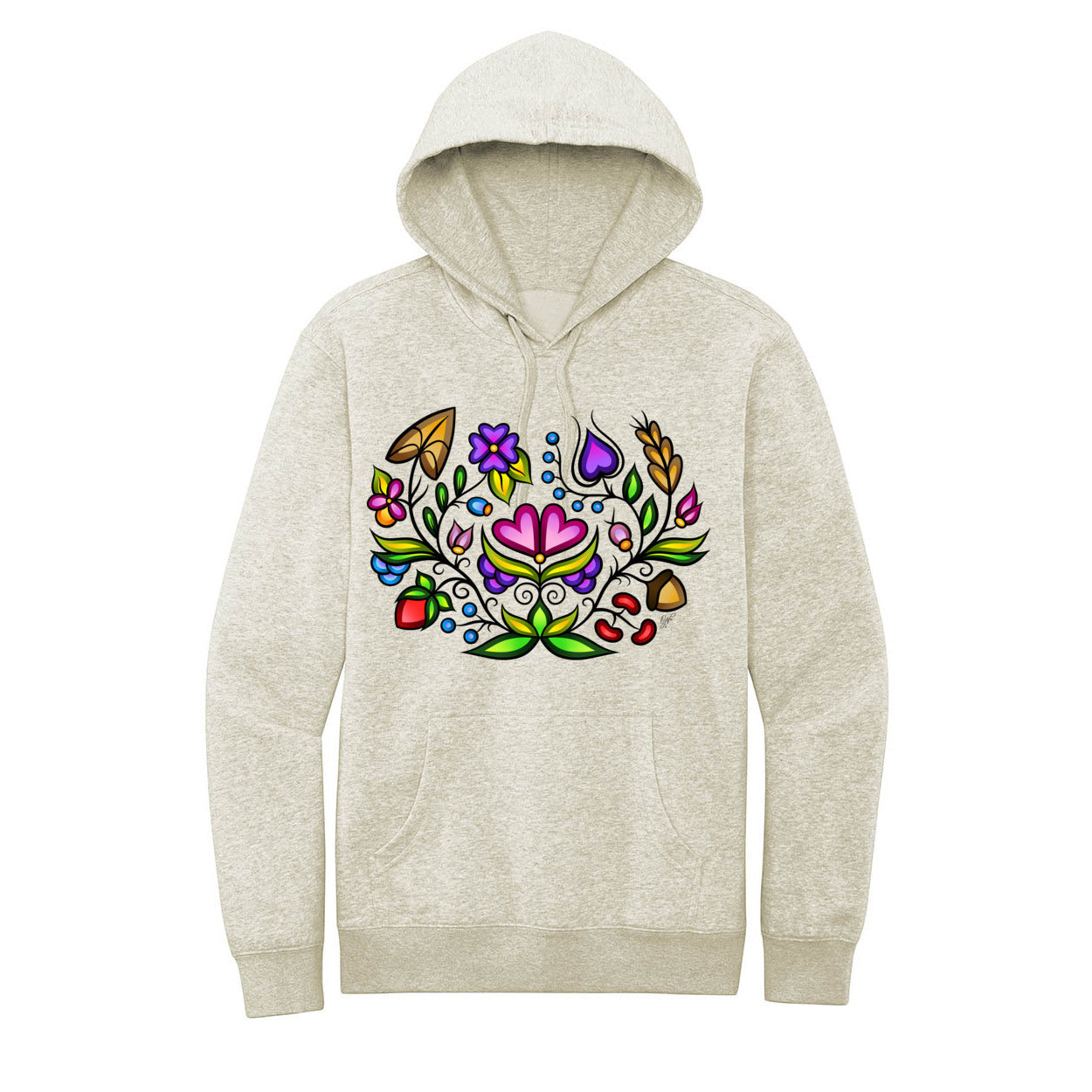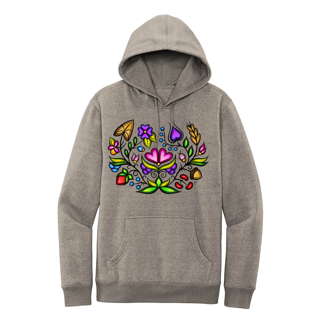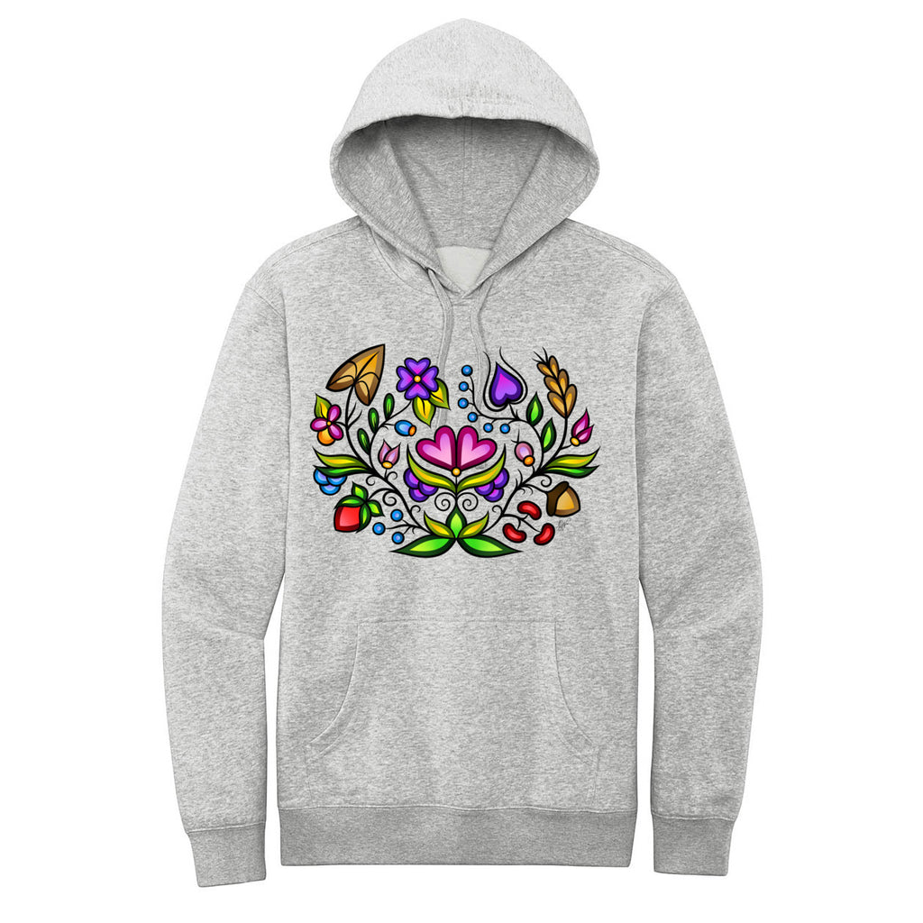 Adult unisex pullover hoodie- original Ojibwe Floral design created by Native American artist Caitlin Newago (Bad River Ojibwe.)