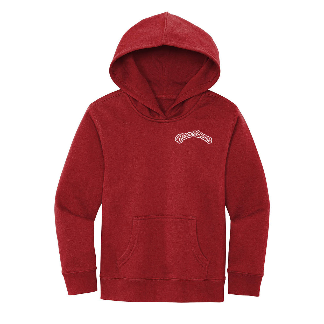 DT6100Y District® Youth V.I.T.™ Fleece Hoodie- This soft fleece is everything and more at an unbeatable value. 8.3-ounce, 65/35 ring spun cotton/polyester100% ring spun cotton face (Solids, Light Heather Grey)60/40 ring spun cotton/polyester (Royal Frost, Heathered Charcoal)Jersey-lined, two-piece hoodDyed-to-match twill back neck tapeNo drawcordSide seamed1x1 rib knit cuffs and hemTear-away label