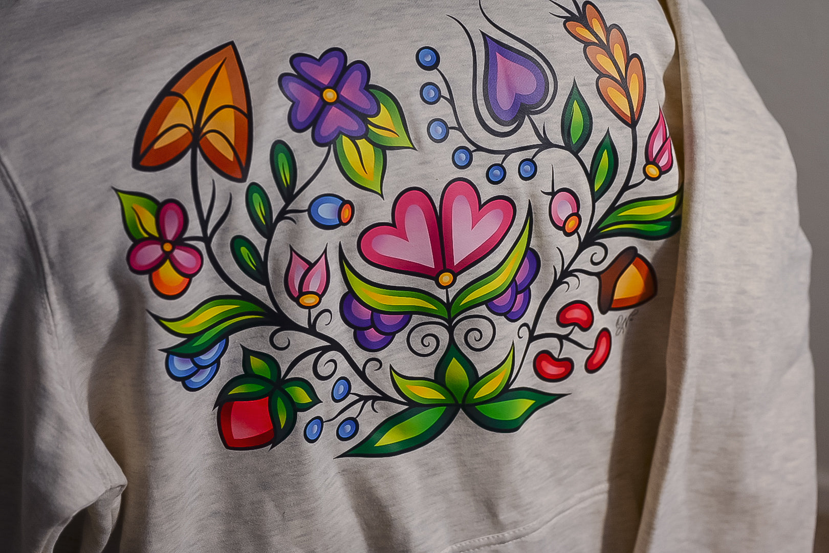 Adult unisex pullover hoodie- original Ojibwe Floral design created by Native American artist Caitlin Newago (Bad River Ojibwe.)